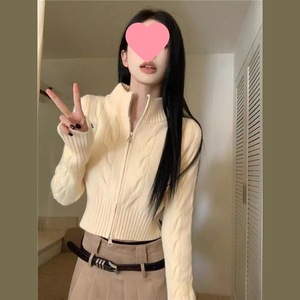 复古立领韩版毛衣开衫外套秋冬拉链修身时尚短款长袖针织上衣外套