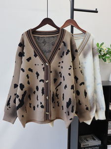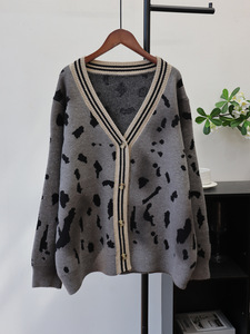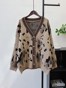 复古豹纹设计感针织开衫2025秋冬新款韩版宽松慵懒风毛衣外套女潮