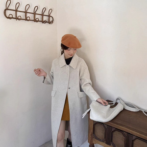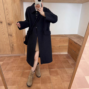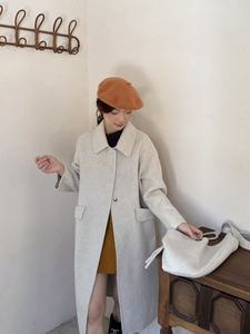羊毛大衣秋冬新款2025斜挎包包长款氛围感娃娃领大衣女双面羊绒
