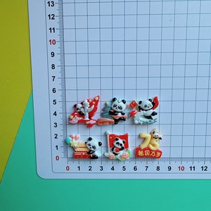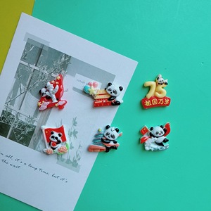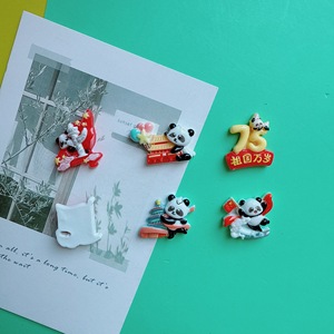 新款卡通亮面75国庆节熊猫字牌贴片 树脂diy发夹手机壳钥匙扣配件