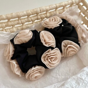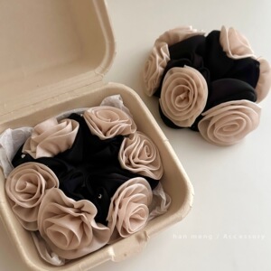 法式玫瑰复古立体玫瑰花花朵ins风发圈马尾高级皮筋丸子发饰头绳