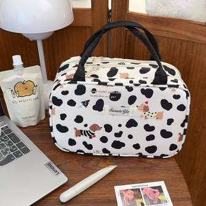 可爱奶牛腊肠狗化妆包大容量三层分区化妆品收纳包便携外出洗漱包