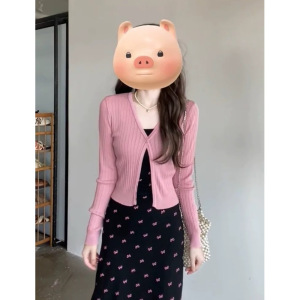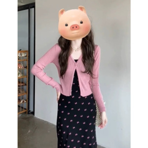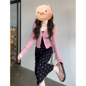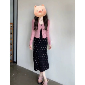 2025早秋新款女法式气质薄款修身针织开衫收腰显瘦碎花吊带连衣裙