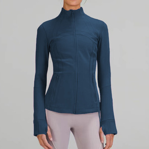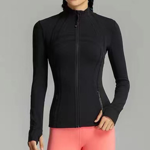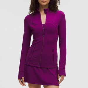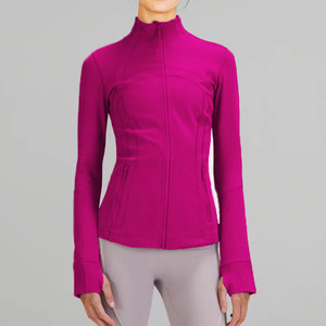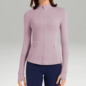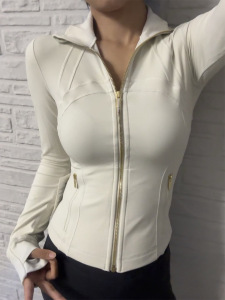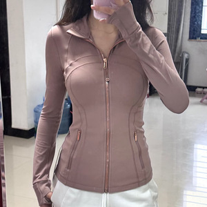lulu欧美修身百搭长袖瑜伽服上衣紧身拉链瑜伽跑步立领运动外套女