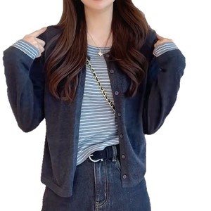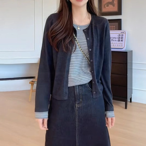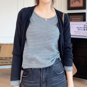 韩系拼接假两件条纹针织开衫长袖秋冬2025新款设计感减龄打底上衣