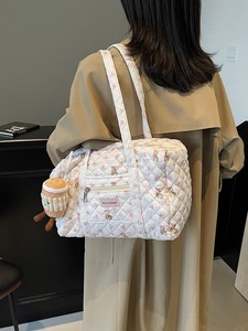 大容量出行托特包包女2025新款小众印花手提帆布包通勤百搭单肩包