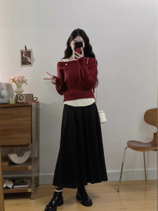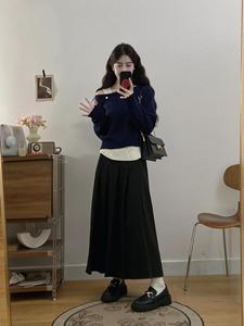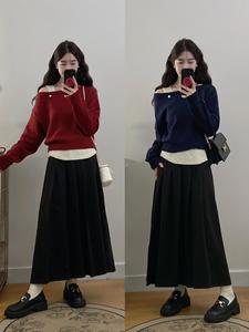 2025年大码秋冬新品韩系时尚设计感真两件套头针织衫+毛呢半身裙