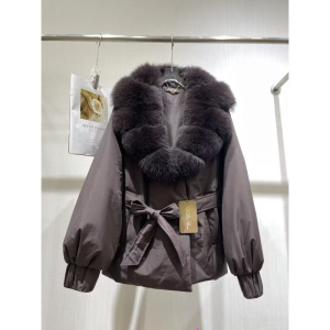 冬季新款狐狸毛皮草白鹅绒羽绒服女短款宽松派克服外套女装批发