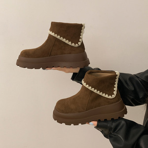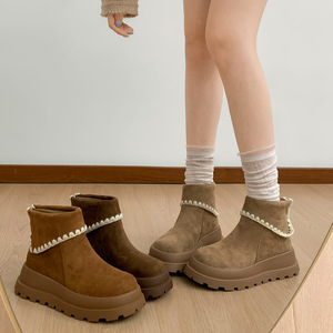 复古棕色英伦风厚底马丁靴女2025新款秋季配裙子显瘦增高雪地短靴