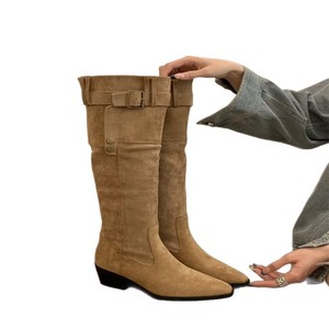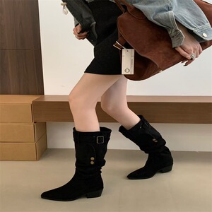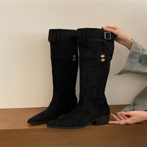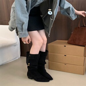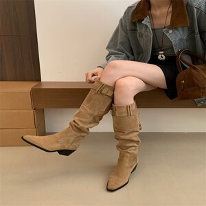 2025新款绒面辣妹风两穿时髦增高长靴法式复古粗跟时装靴女西部靴
