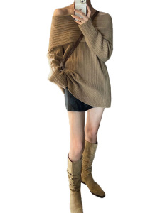 卡其色一字肩毛衣女早秋季2025新款慵懒风高级感露肩针织秋冬上衣