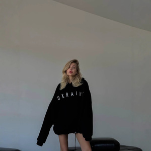 亚马逊跨境2025秋季新款宽松字母印花休闲百搭时尚潮牌连帽卫衣女