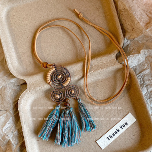 波西米亚民族风长款流苏项链女新中式复古挂脖卫衣链小众设计配饰