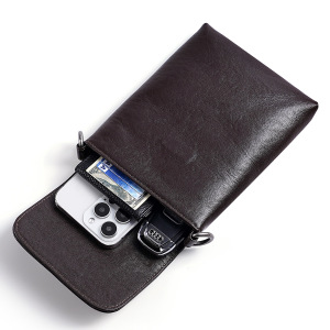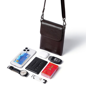 新款植鞣皮手机包男女士潮流翻盖通勤手机包袋简约大气斜挎包真皮
