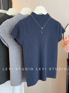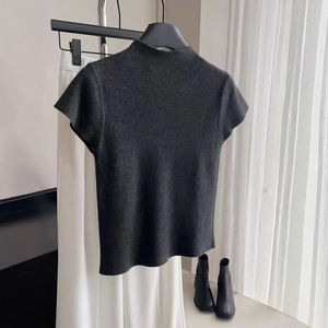 2025春夏新款韩版修身小高领纯色通勤显瘦百搭短袖针织衫女