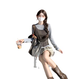 深灰色背心T恤两件套X7822