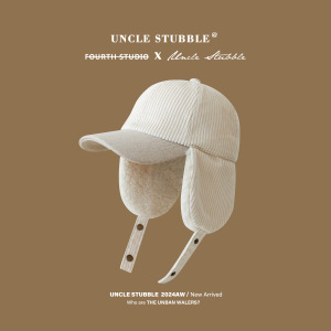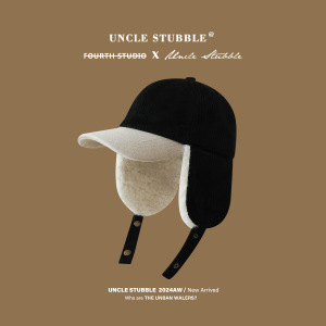 加绒保暖雷锋帽男女同款骑行护耳飞行帽秋冬复古灯芯绒拼色鸭舌帽