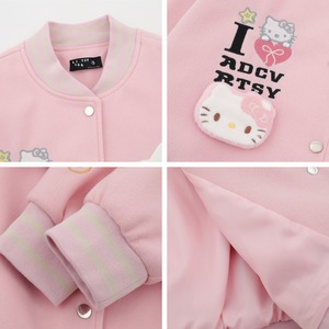 美式复古可爱凯蒂猫刺绣棒球服男女秋冬学院风宽松休闲情侣外套