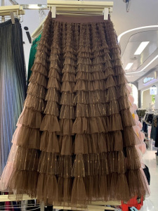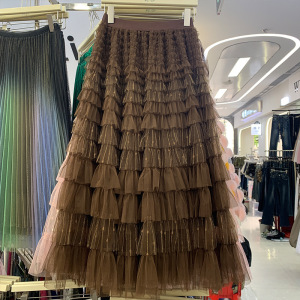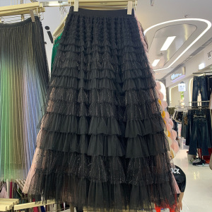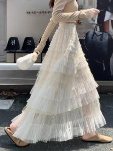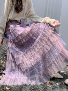 优雅紫超仙网纱蛋糕裙重工层次感仙女裙女秋冬高腰显瘦大摆半身裙