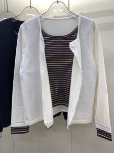 韩系拼接假两件条纹针织开衫长袖秋冬2025新款设计感减龄打底上衣