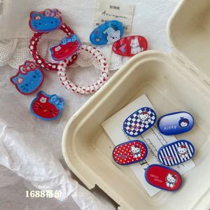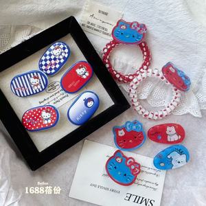 可爱红蓝撞色kitty猫发夹时尚百搭儿童鸭嘴夹碎发刘海侧边夹卡通
