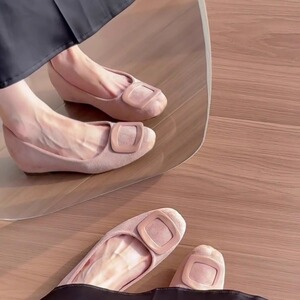 羊皮版~内增高真皮方头浅口单鞋2025温柔风舒适百搭一脚蹬平底鞋