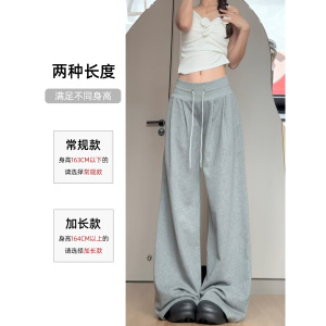 美式灰色运动裤女春秋季小个子宽松直筒休闲低腰阔腿长裤百搭卫裤