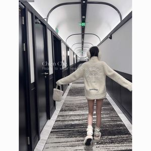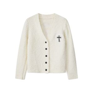 重工刺绣十字架V领毛衣外套女秋季新款宽松软糯慵懒感针织衫