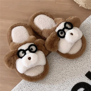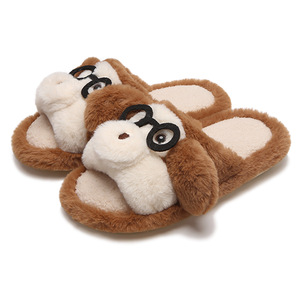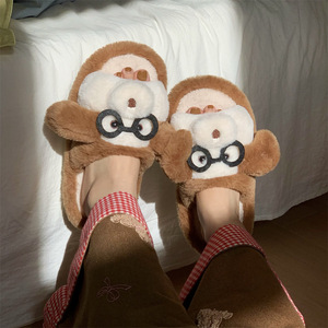 时尚家居情侣卧室趣味小狗男女毛毛拖鞋秋冬软底保暖小猴子棉拖鞋