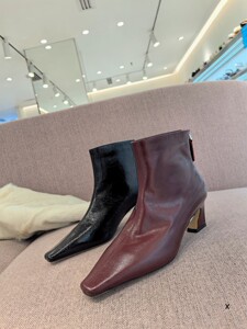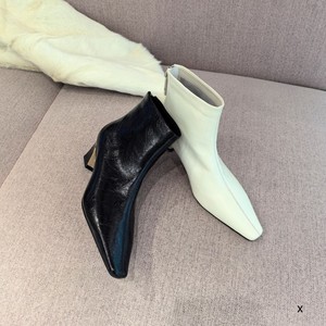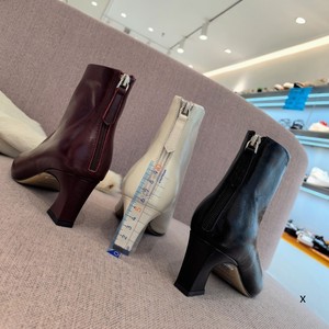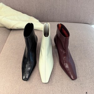 欧洲站XJ女鞋25冬时尚软褶皱油蜡牛皮小方头舒适后拉链粗低跟短靴