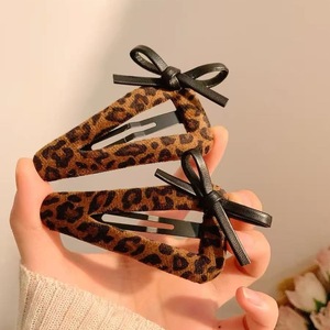 麂皮豹纹蝴蝶结三角镂空BB夹 1个