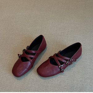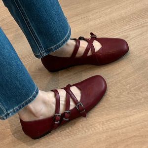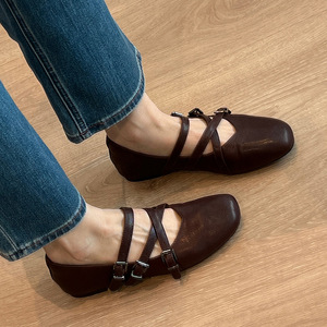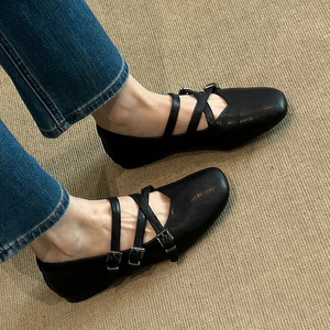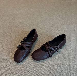 羊皮版~2025新款真皮百搭芭蕾舞鞋法式复古交叉一字带浅口单鞋女