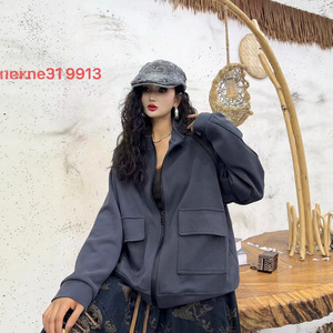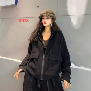 大口袋拉链开衫女 2025秋新款韩版宽松休闲时尚运动卫衣外套 9913