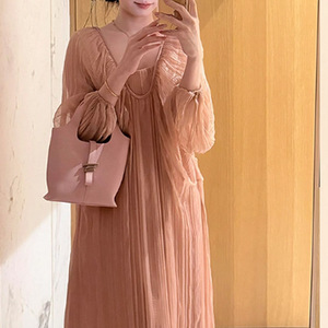 法式温柔风粉色雪纺连衣裙女2025秋季新款独特漂亮巨好看宽松裙子