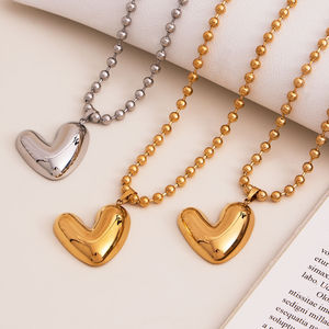 欧麦卡INS风欧美网红跨境18K镀金不锈钢爱心圆珠项链个性轻奢饰品