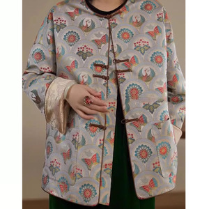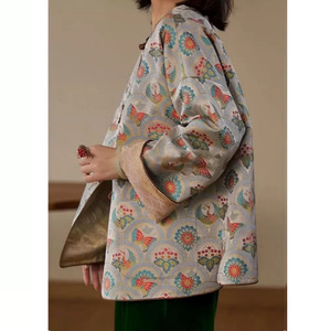 复古轻国风中式外贸出口捡漏禅意改良唐装印花宋锦盘扣圆领外套女