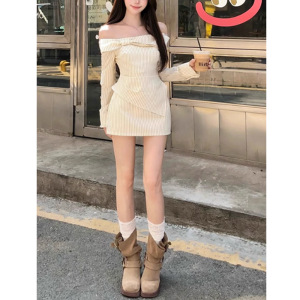 贵气条纹 早秋蝴蝶结一字肩设计感收腰显瘦上衣女半裙气质甜美风