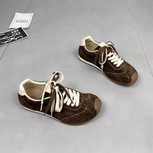 真皮厚底增高德训鞋女025秋季新款百搭复古系带休闲运动鞋阿甘鞋