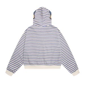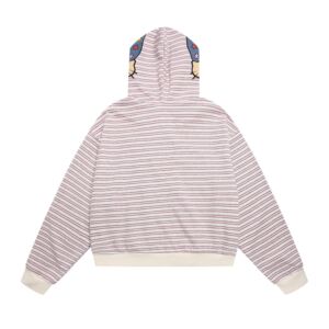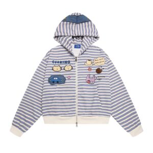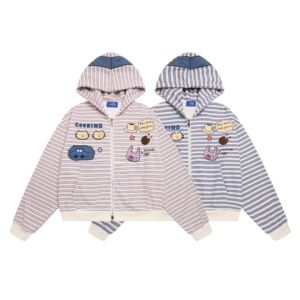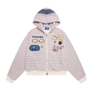 美式趣味卡通刺绣条纹连帽开衫卫衣男女秋冬宽松百搭情侣卫衣外套