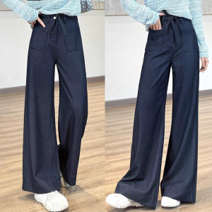 2025秋 垂顺仿牛仔阔腿裤双版本仿褪色抗皱气质宽边西装裤603018