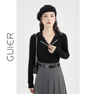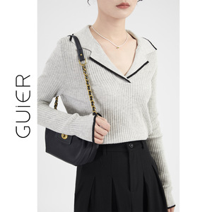 桂儿「澳毛线」软糯!灰色针织衫秋装女小众法式显瘦V领气质上衣