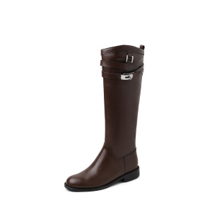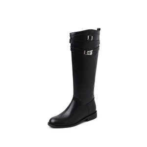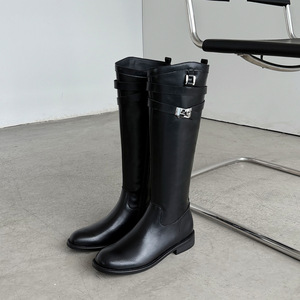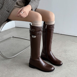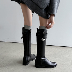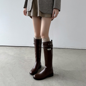 小众时尚气质显瘦长筒靴2025秋冬新款圆头粗跟不过膝皮带扣骑士靴