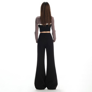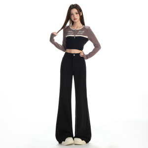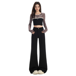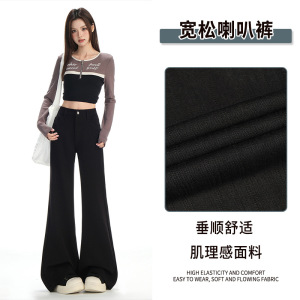 黑色肌理感YKK拉链微喇牛仔裤女2025秋季宽松不贴腿小个子喇叭裤