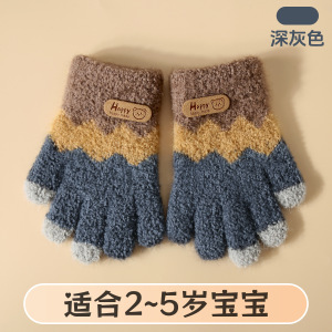 严选冬季毛绒卡通儿童手套防寒针织手套可爱小童毛线保暖手套