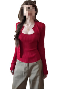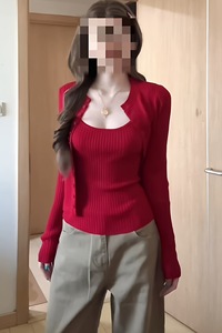 红色纯欲辣妹针织吊带开衫两件套女早秋季百搭小个子短款上衣外套