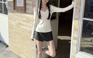 v领长袖t恤女2025新款韩系穿搭修身长袖内搭打底衫咖色