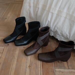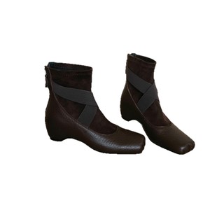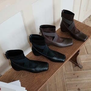 2025秋季款5cm复古交叉带方头大象纹芭蕾清冷风设计师款时装短靴