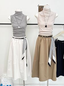 2025秋新款百搭遮肉A字中长裙老钱风松紧腰拼接半身裙女伞裙时尚