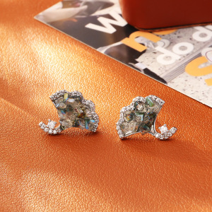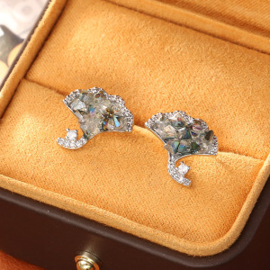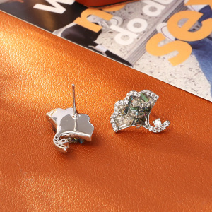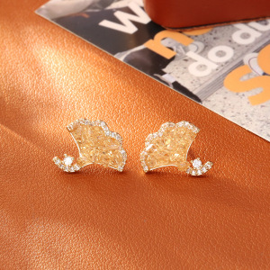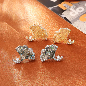 轻奢闪亮冰晶银杏叶耳钉高级感时尚精致优雅耳饰森系清新义乌配饰