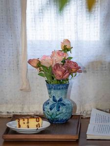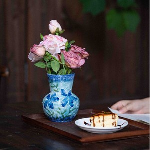 景德镇陶瓷花瓶渐变小兰花油画风花瓶手工陶艺干花装饰陶瓷小花器